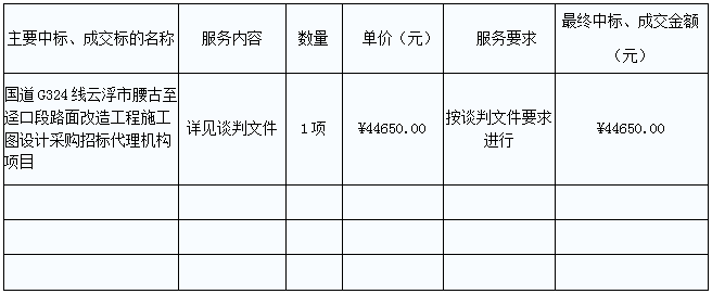 G324線云浮市腰古至逕口段路面改造工程施工圖設(shè)計(jì)采購(gòu)招標(biāo)代理機(jī)構(gòu)項(xiàng)目的中標(biāo)、成交公告